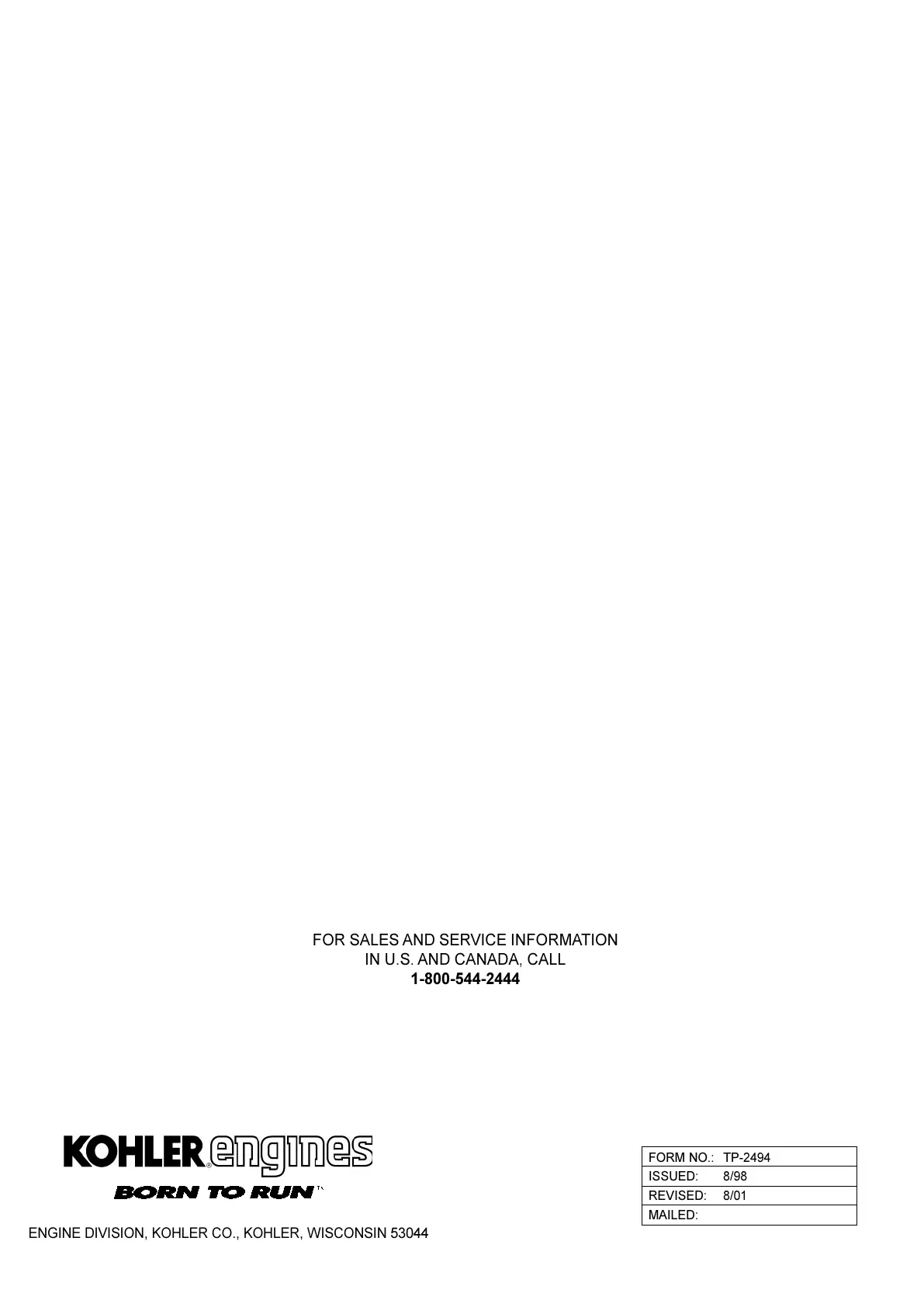 ENGINE DIVISION, KOHLER CO., KOHLER, WISCONSIN 53044