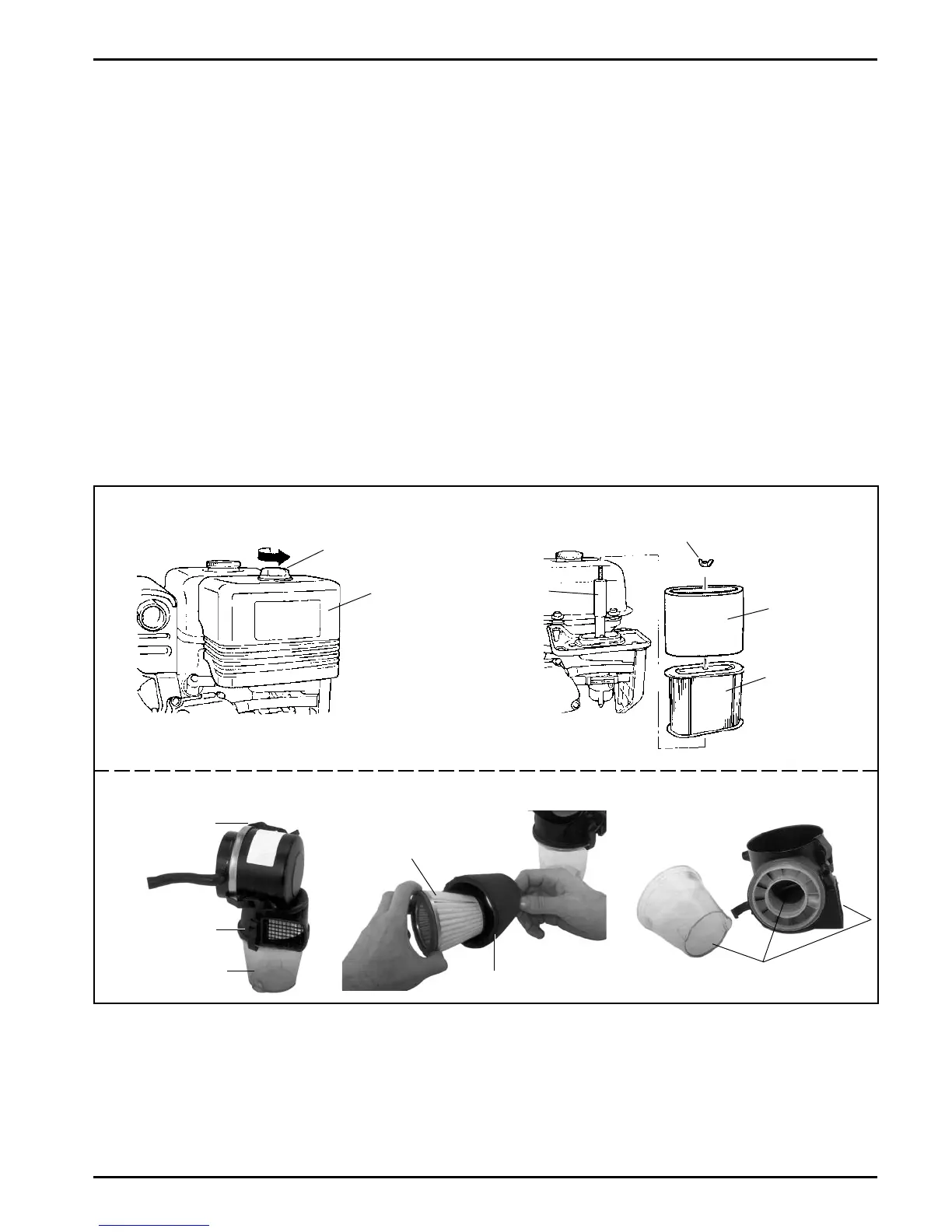 Remove and clean the lower dirt/swirl chamber.