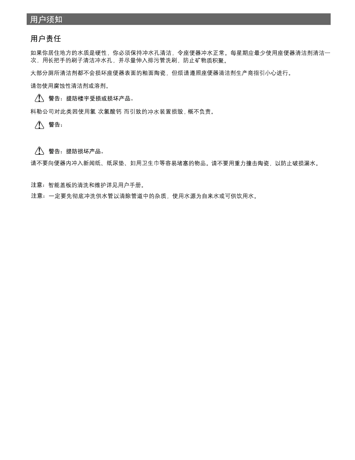 座便器的脚部挤破或损坏。科勒对所有因为凝胶材料(水泥砂浆)安装而引起的座便器破裂恕不负责。