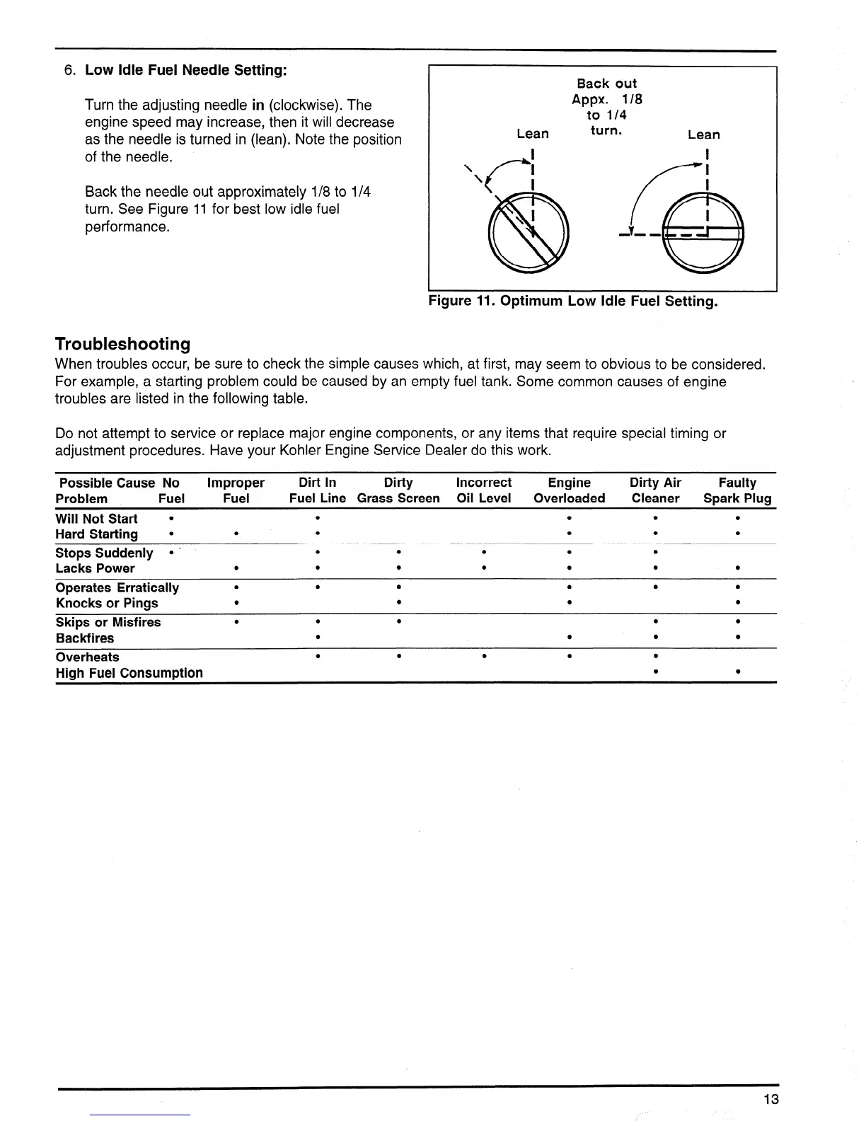 adjustment procedures. Have your Kohler Engine Service Dealer do this work.