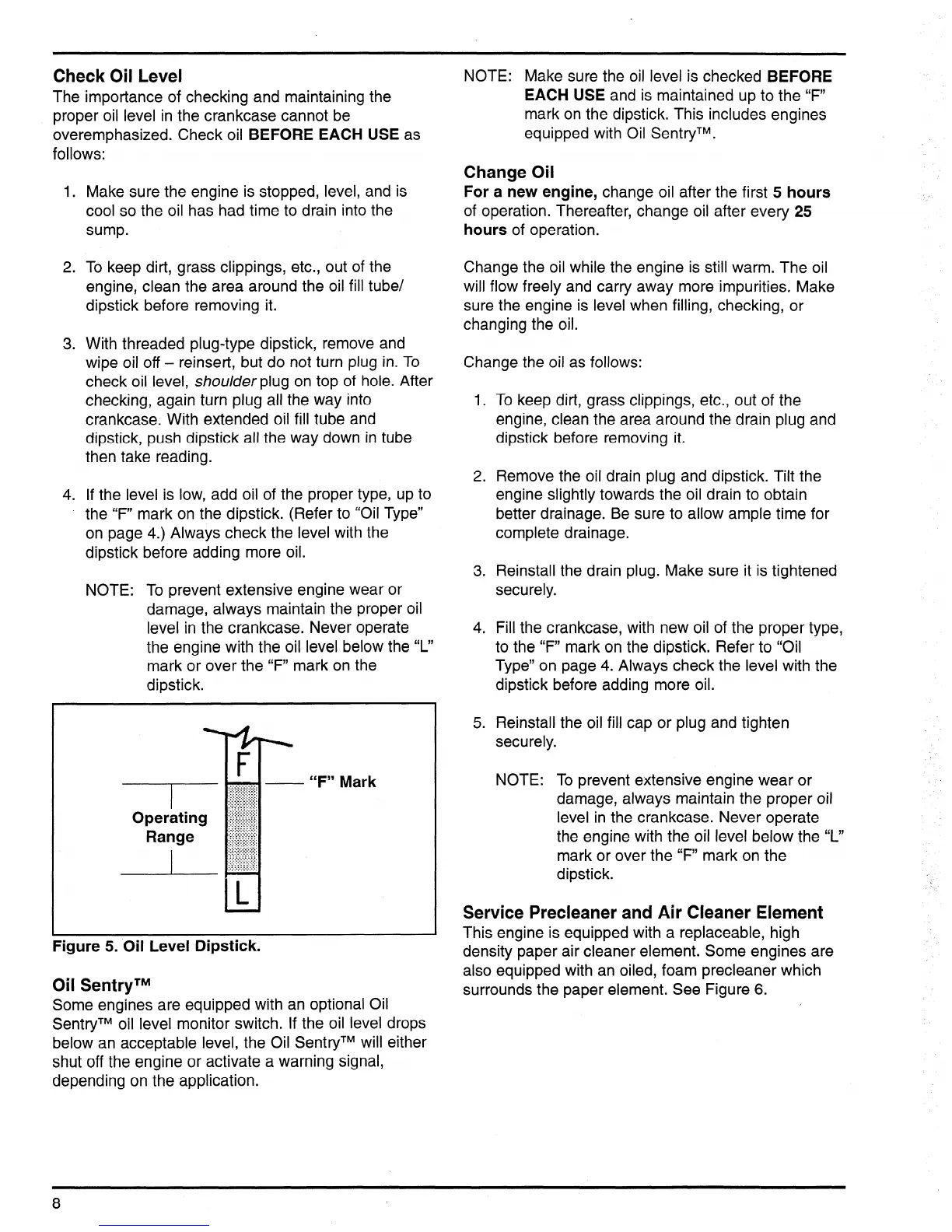 . the “F” mark on the dipstick. (Refer to “Oil Type”