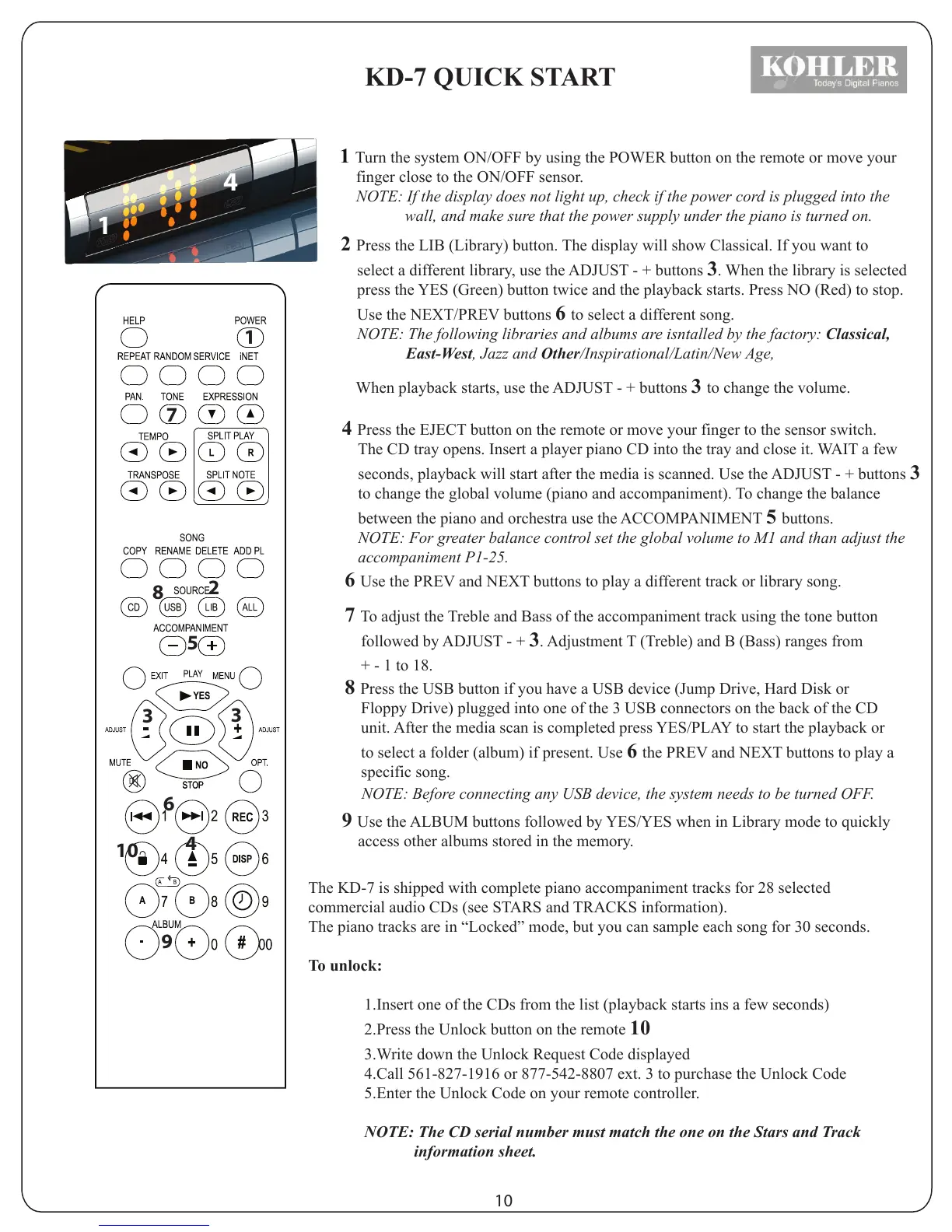 The KD-7 is shipped with complete piano accompaniment tracks for 28 selected