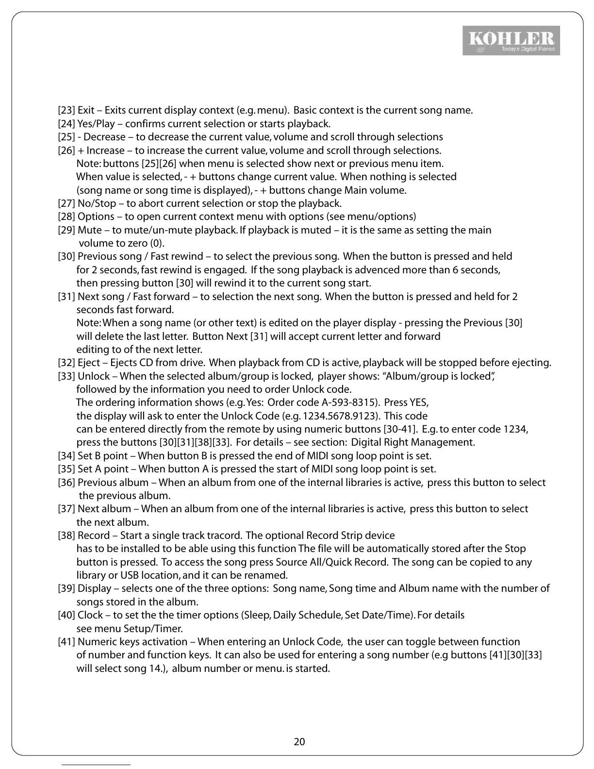 [23] Exit – Exits current display context (e.g. menu). Basic context is the current song name.