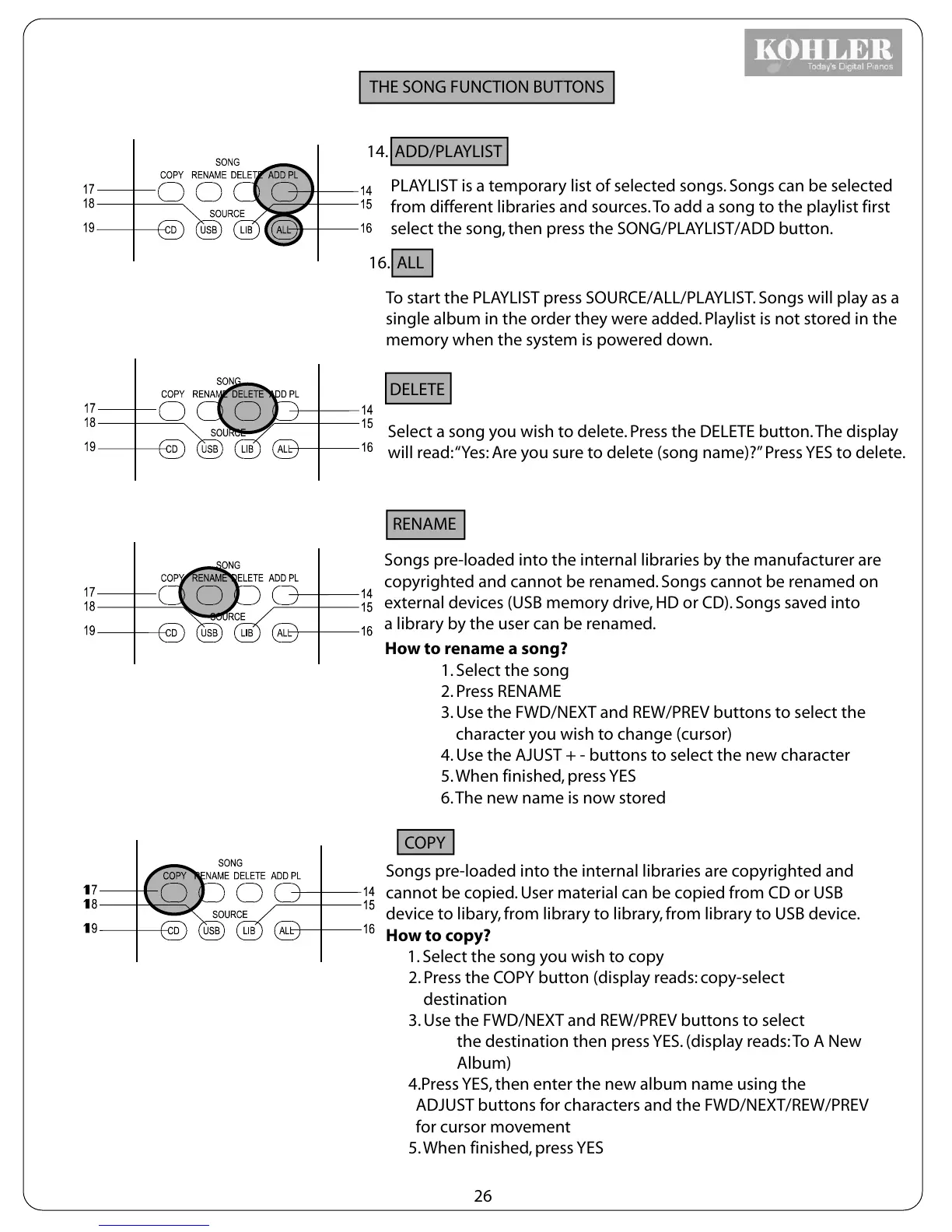 THE SONG FUNCTION BUTTONS
