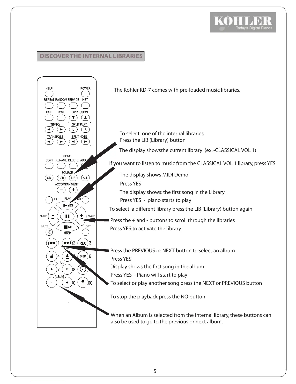 To select a different library press the LIB (Library) button again