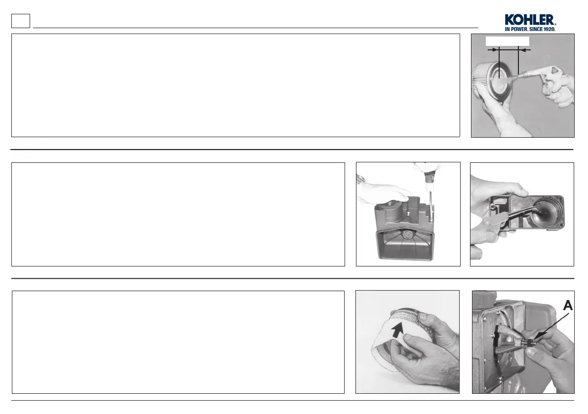 - Pulire la massa ltrante con getto d’aria. L’aria deve essere so󰀩ata dall’interno verso l’esterno della cartuccia a una distanza di non meno di 15