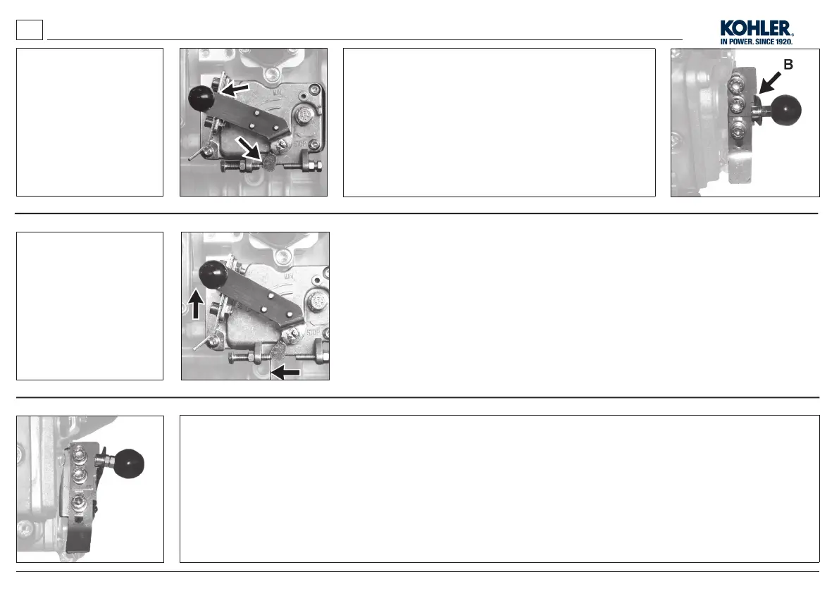 - Encoche de référence (B) du levier d’accélérateur sur la position