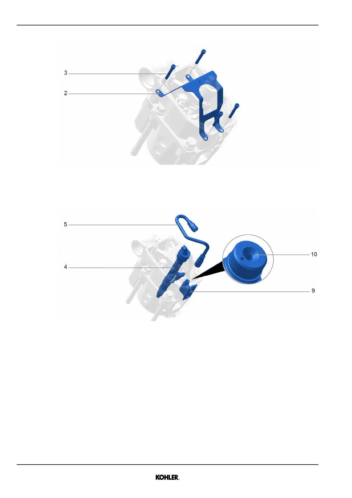 u Lubricate threads and cones of high-pressure pipe 5 with clean engine oil.