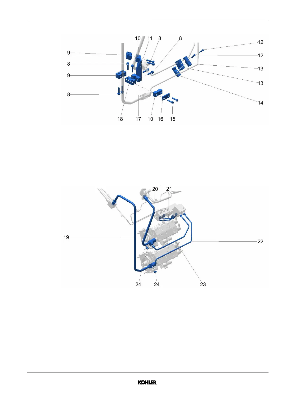 u Remove fuel pipes 19, 20, 21, 22, 23 with flange joints 24.