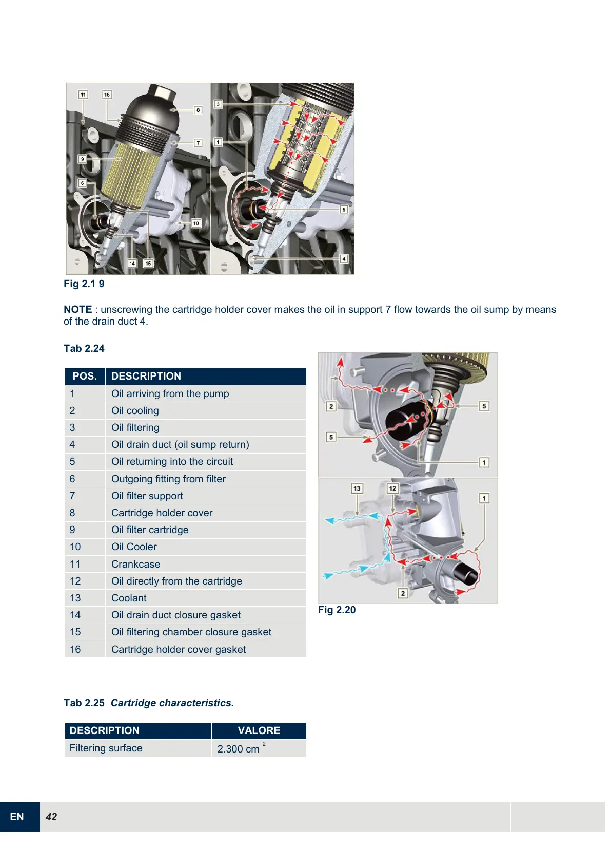 NOTE : unscrewing the cartridge holder cover makes the oil in support 7 flow towards the oil sump by means