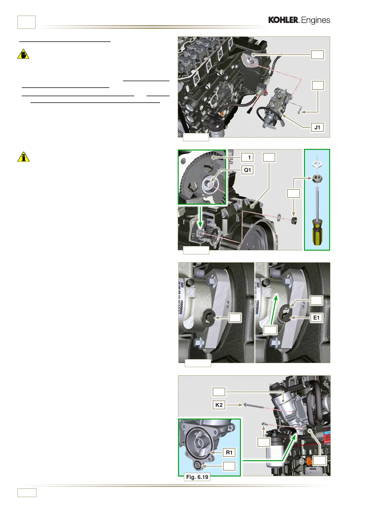 1 - Mount the injection pump J1, inserting the shaft Q1 in the
