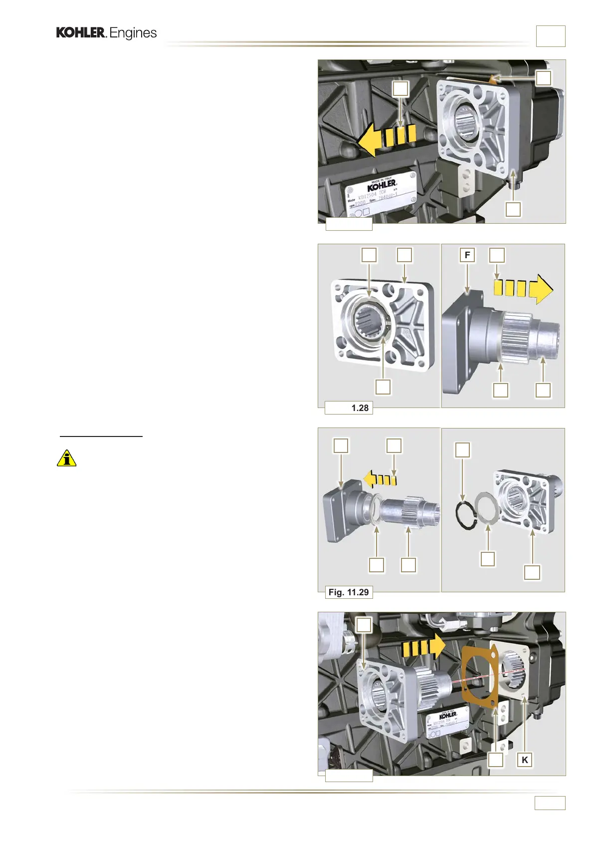2 - Insert the shoulder ring E on the flange F and clamp the