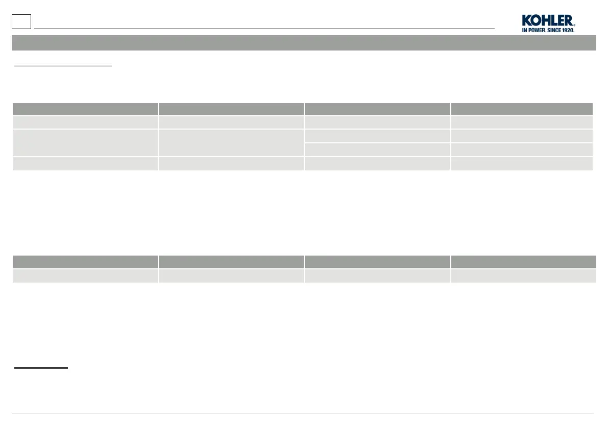 As peças/componentes que forem agendadas para substituição como parte da agenda de manutenção exigida serão cobertas sob a garantia da Kohler Co. a partir da data da