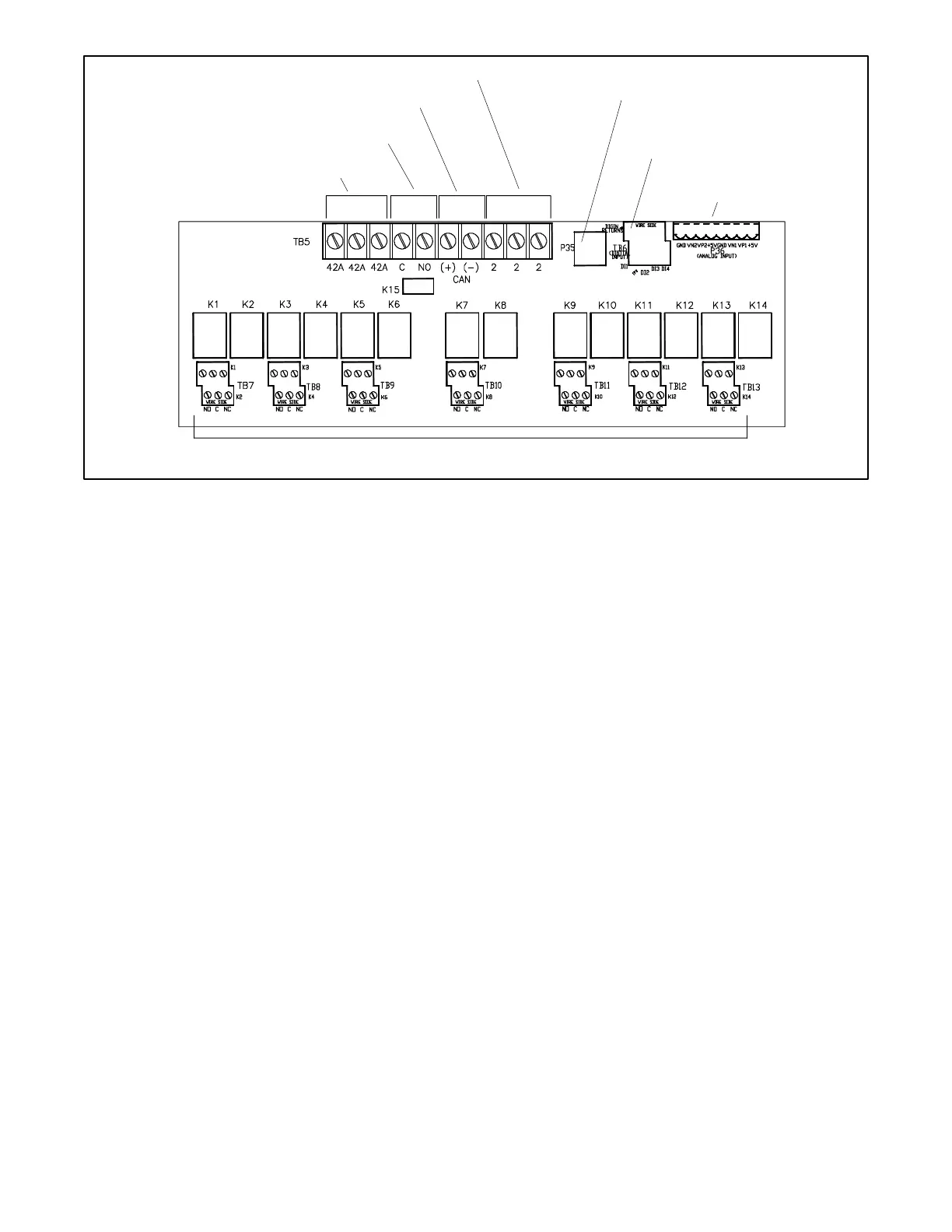 TB7 through TB13, connections for relays K1 through K14 with
