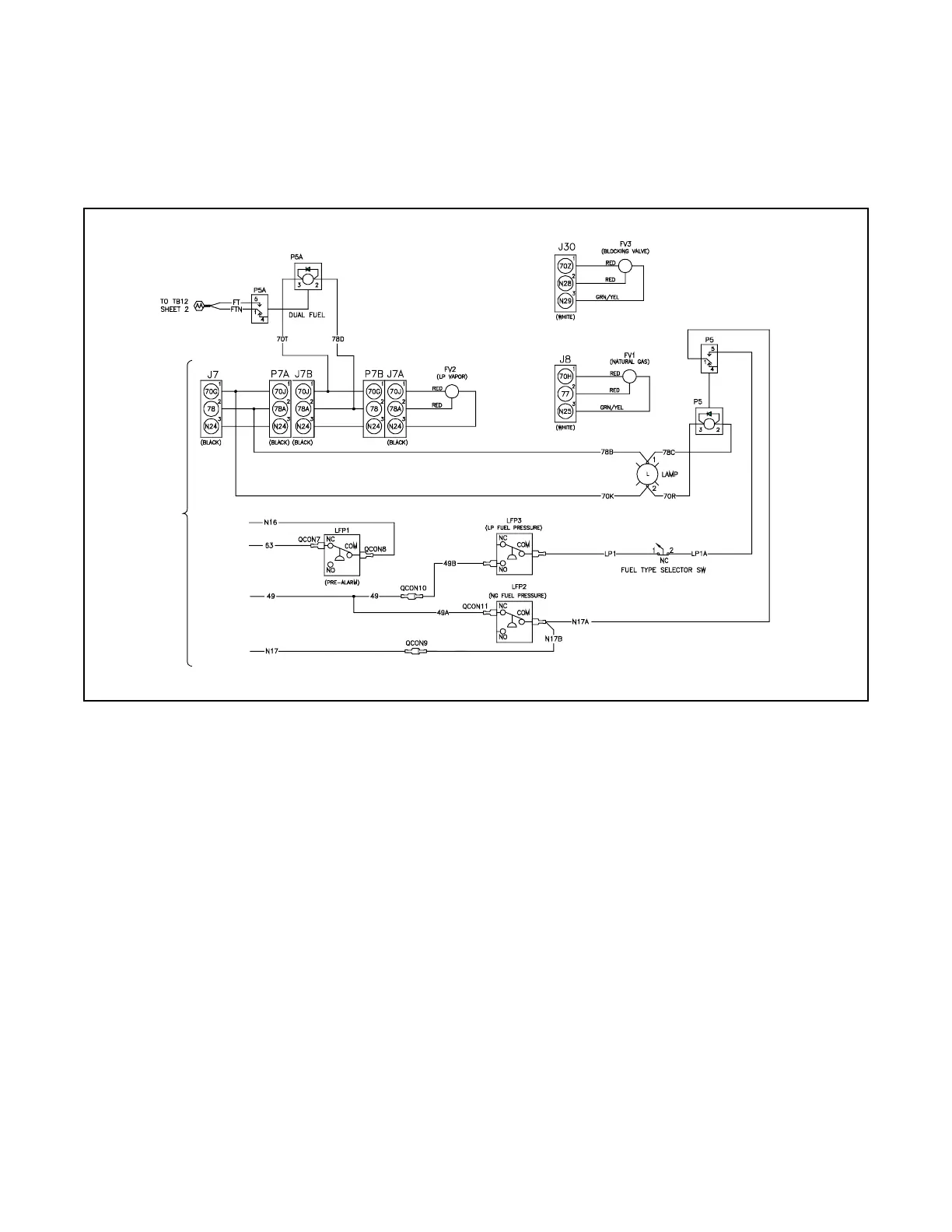 fuel kits are factory installed. Use the following fuel connection tables and wiring diagrams to determine the applicable