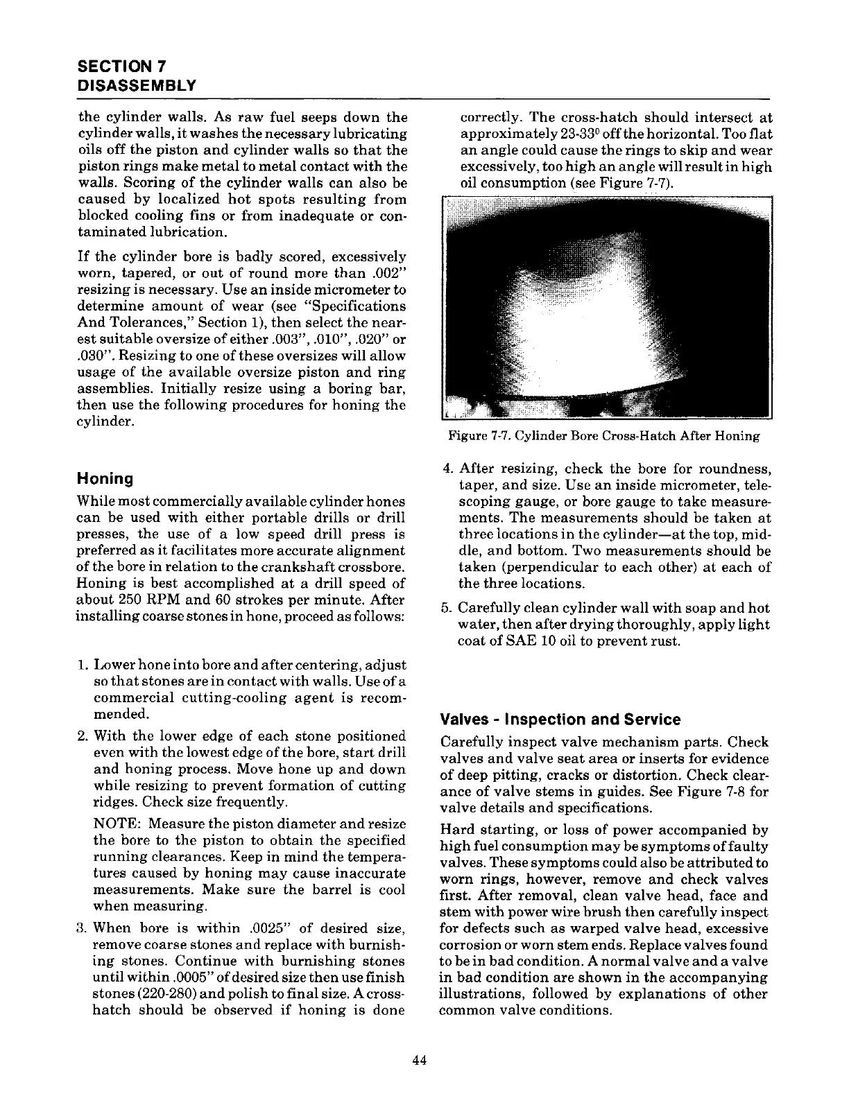 Kohler KT19 - Honing; Valves - Inspection and Service