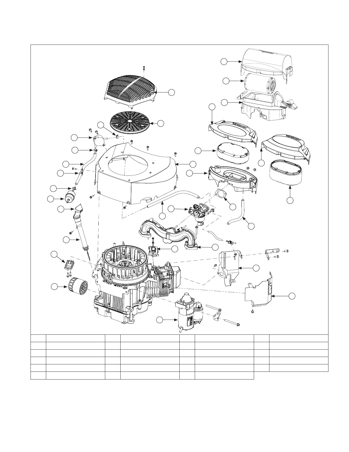A Fixed Guard B Air Cleaner Cover C Debris Screen D Blower Housing