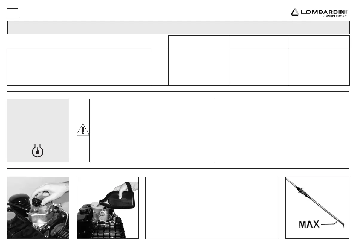 - Il rifornimento e il controllo livello olio deve essere effettuato