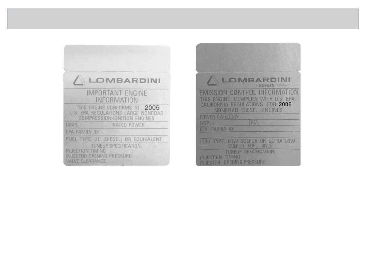 Placa para Normas EPA aplicada en la cubierta del canalizador de aire.