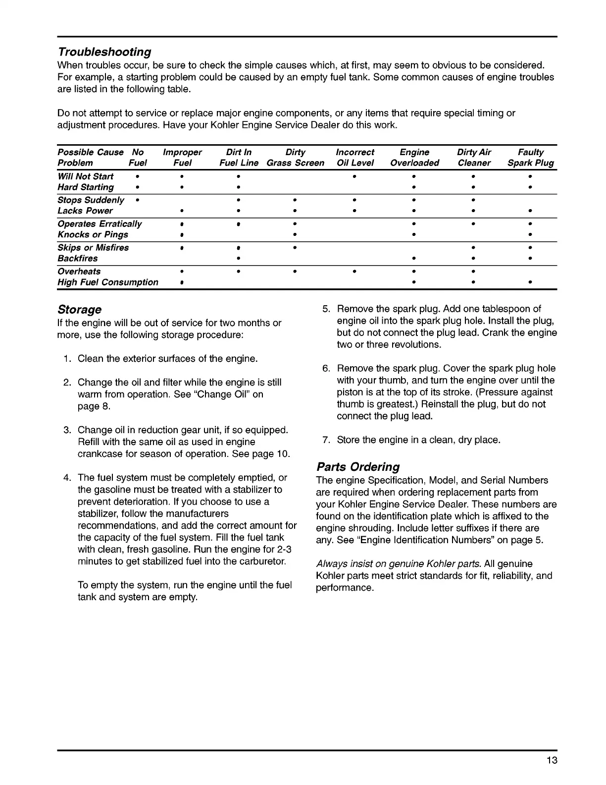 adjustment procedures. Have your Kohler Engine Service Dealer do this work.