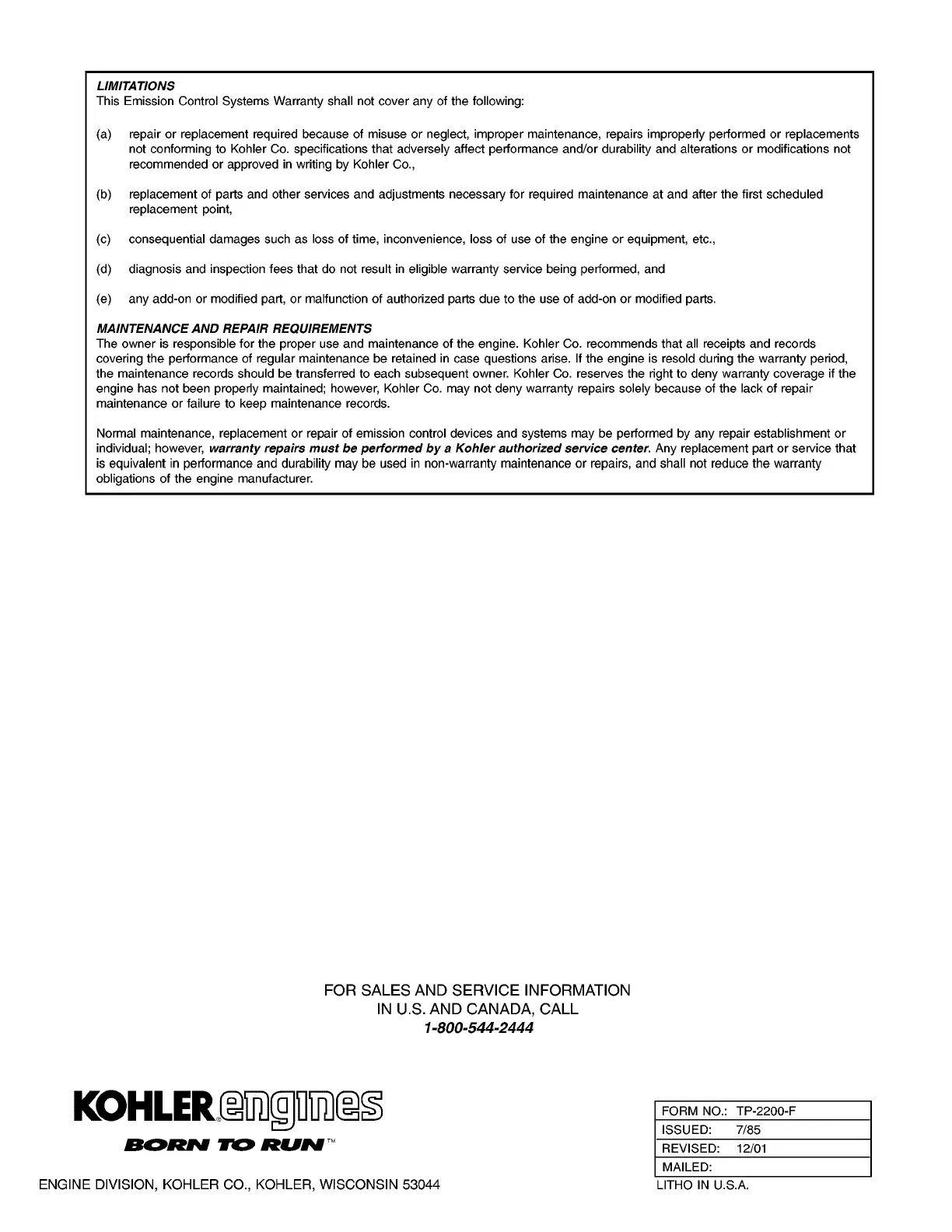 FORM NO.: TP-2200-F