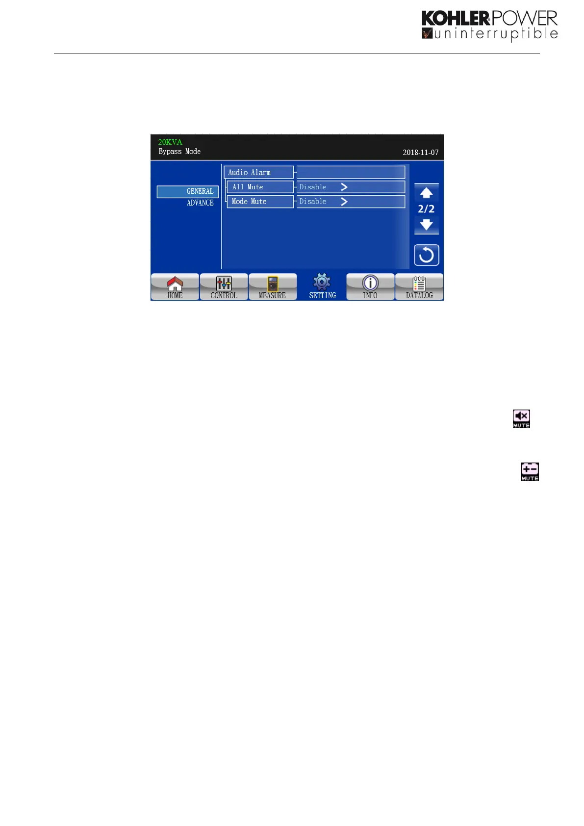 ◼ All Mute: When “enable” is selected, all the faults and warnings will be mute. It will show