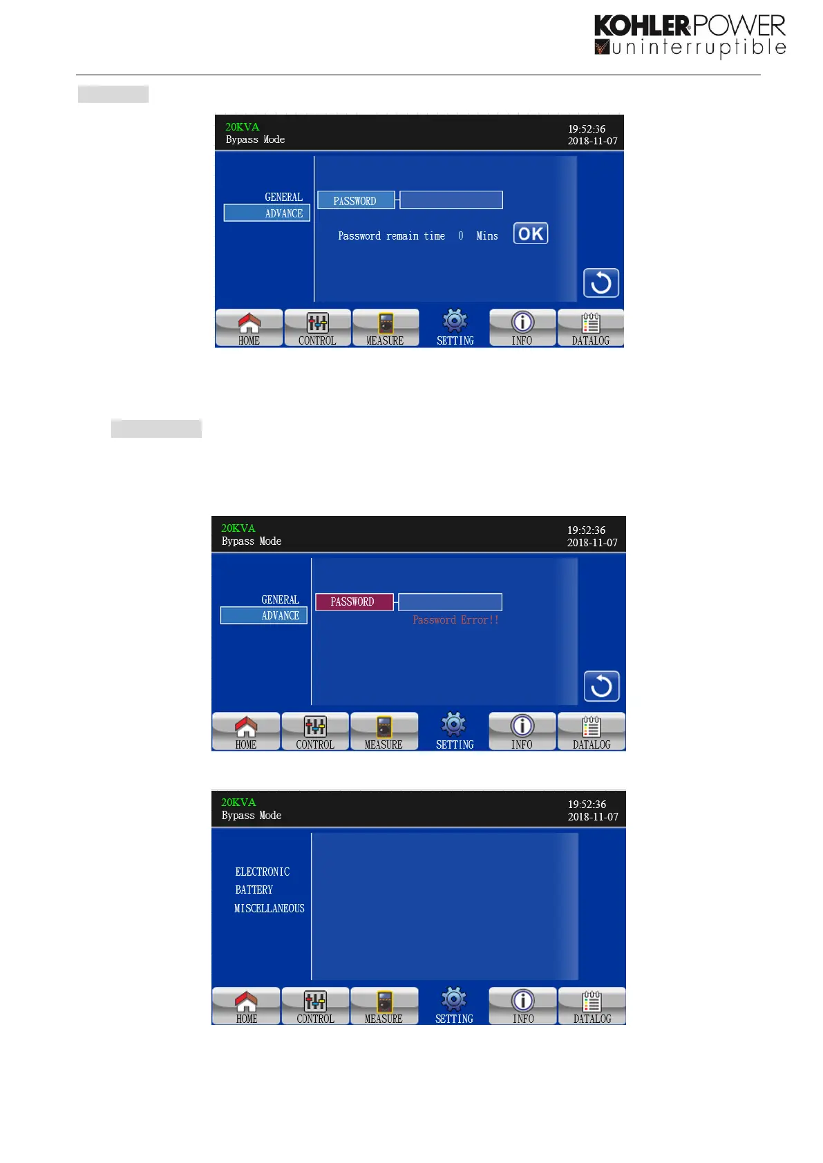 If entered password is right, the page will jump to setting screen. If the password is wrong, it will ask to