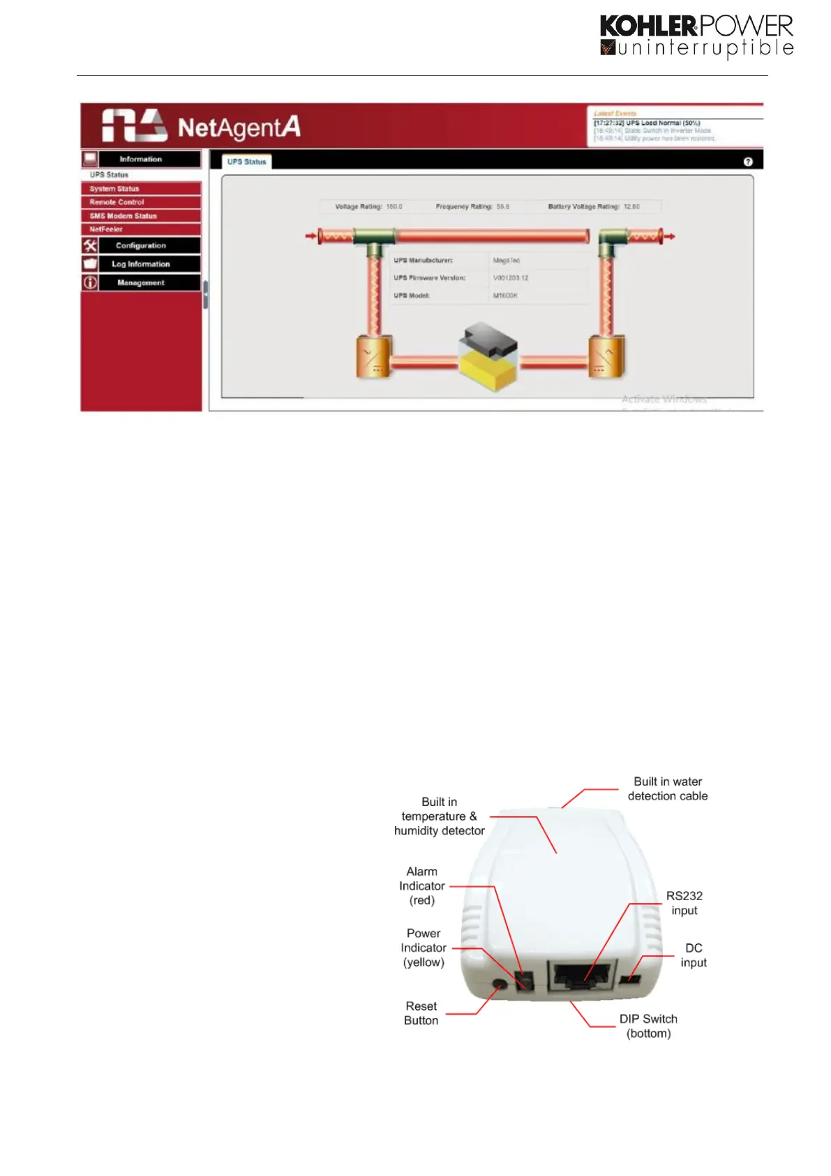 same network as the SNMP. When the UPS goes into an AC failure condition or Battery Low condition, the
