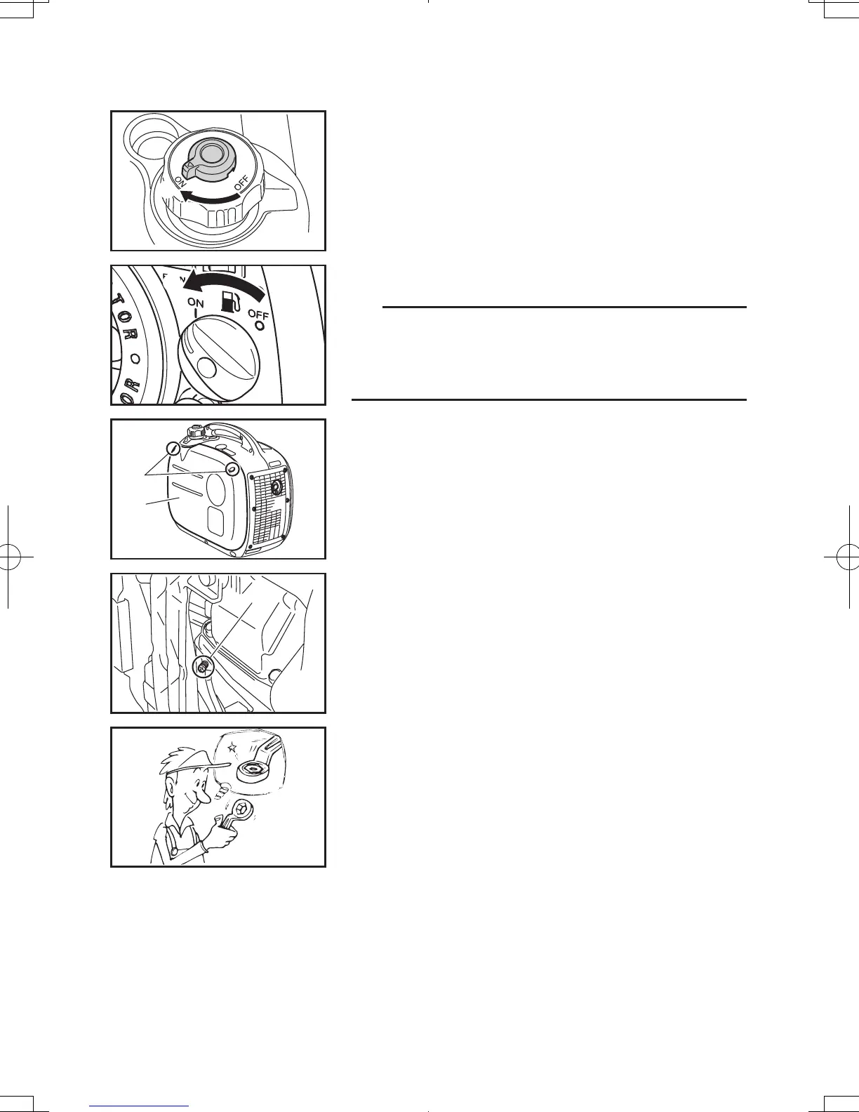 4. Turn the fuel tank cap air vent knob and fuel cock