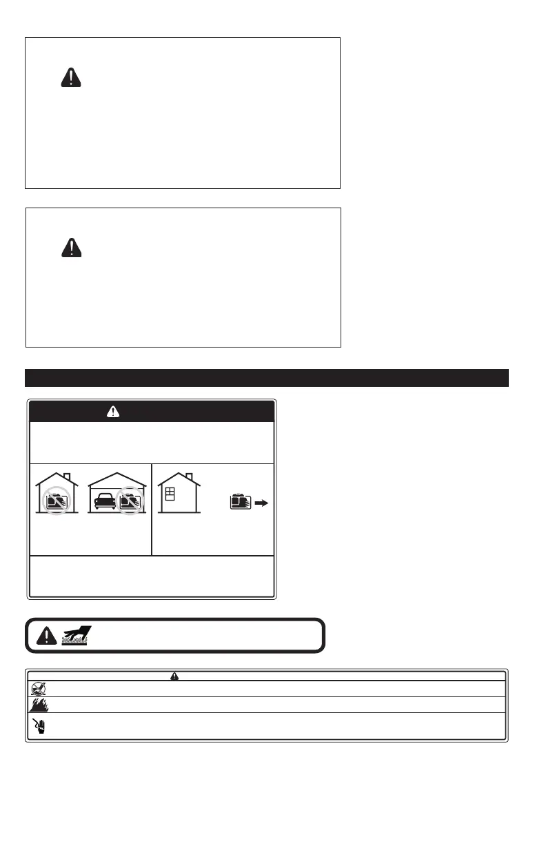 ● Do not fill fuel tank while generator is hot or running. / No llene el tanque de combustible mientras el generador esté caliente o funcionando. / N'ajoutez pas de carburant si le moteur est chaud ou s'il tourne.