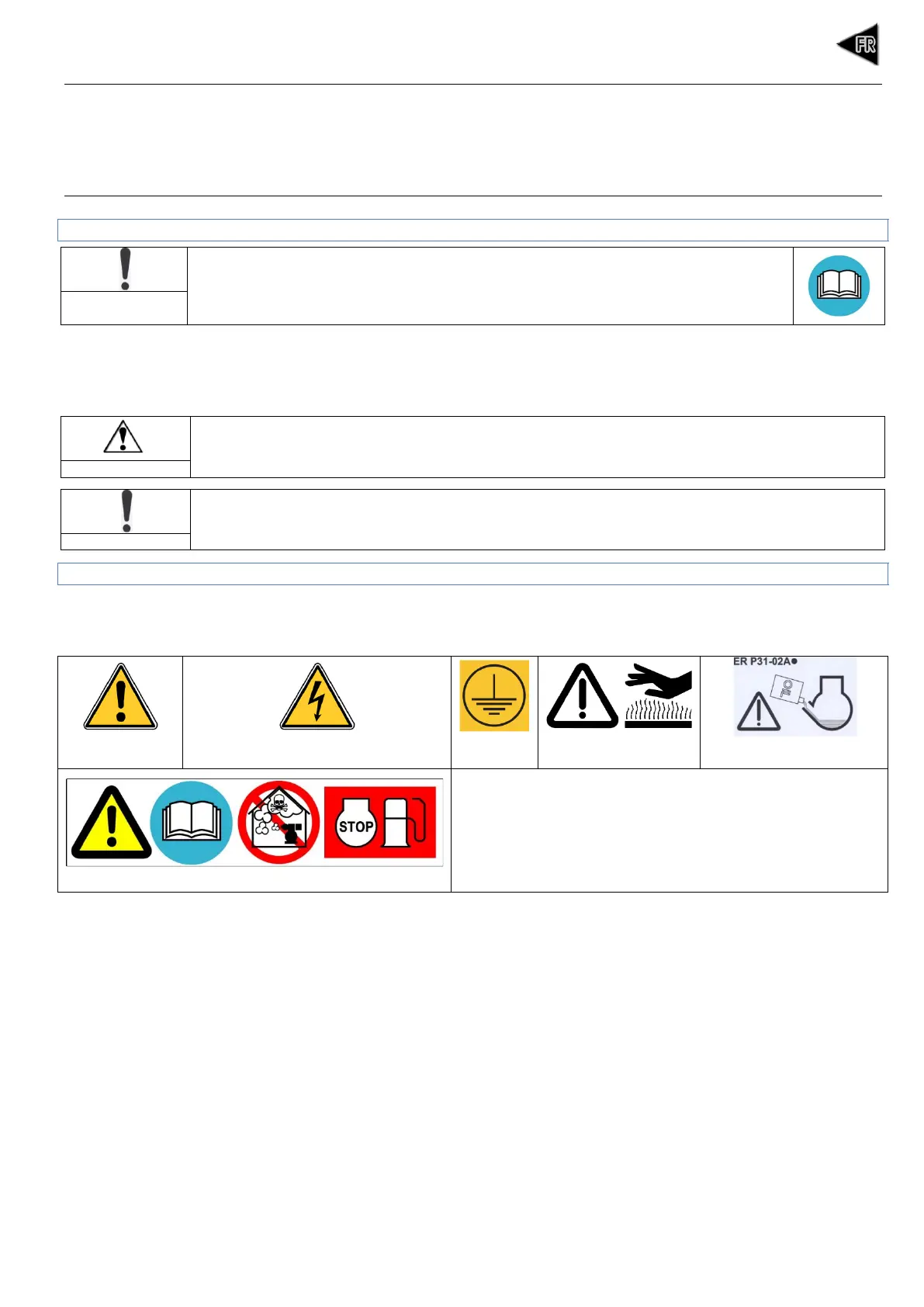 2.1 Signification des pictogrammes présents sur le groupe électrogène