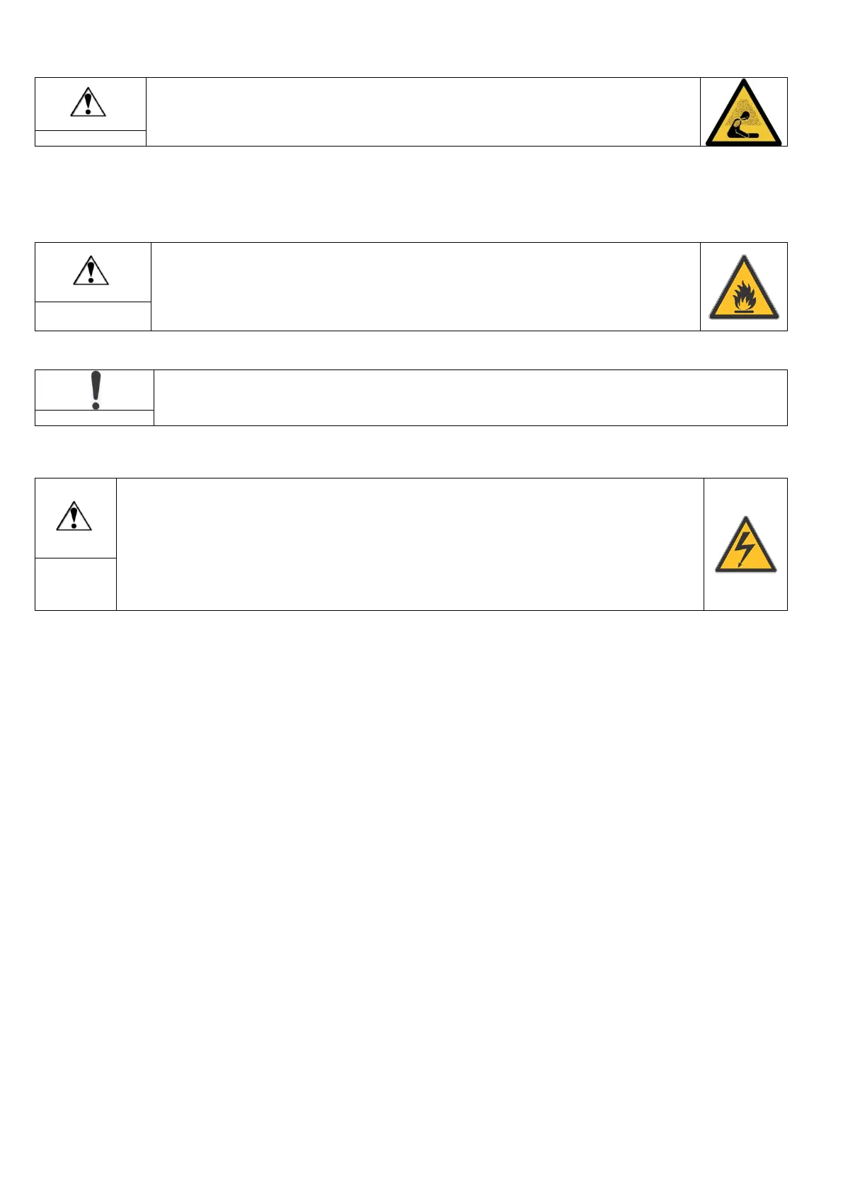 Never operate the unit in areas containing flammable products (risk of sparks). Keep all