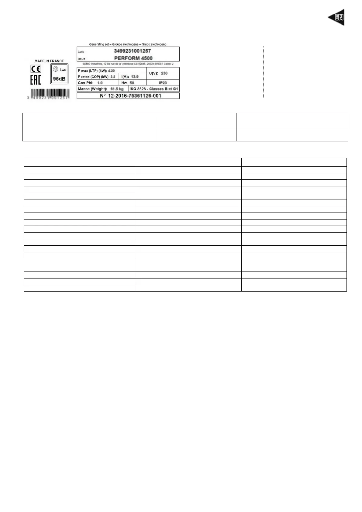 event of an overload and/or short circuit, the supply of electrical energy may be cut. If necessary, replace the circuit breakers in the generating set