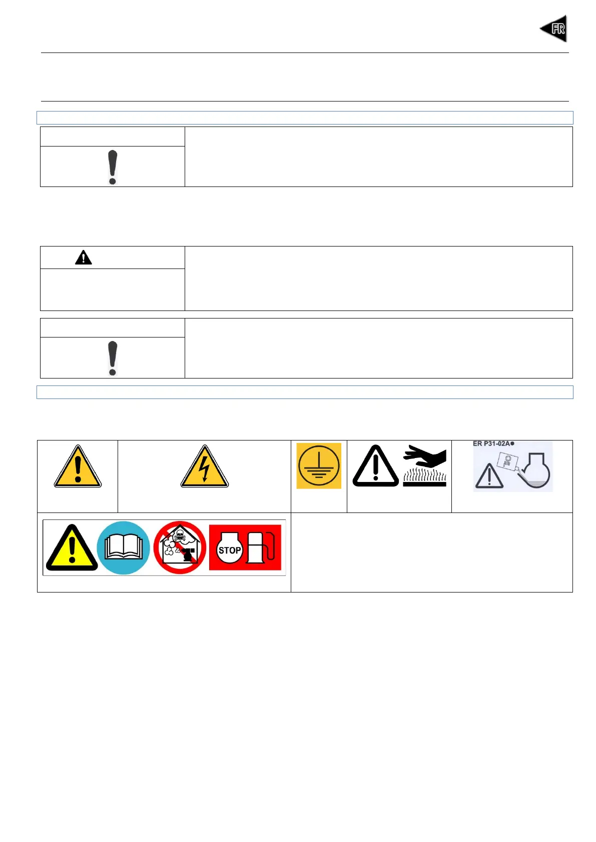 2.1 Signification des pictogrammes présents sur le groupe électrogène
