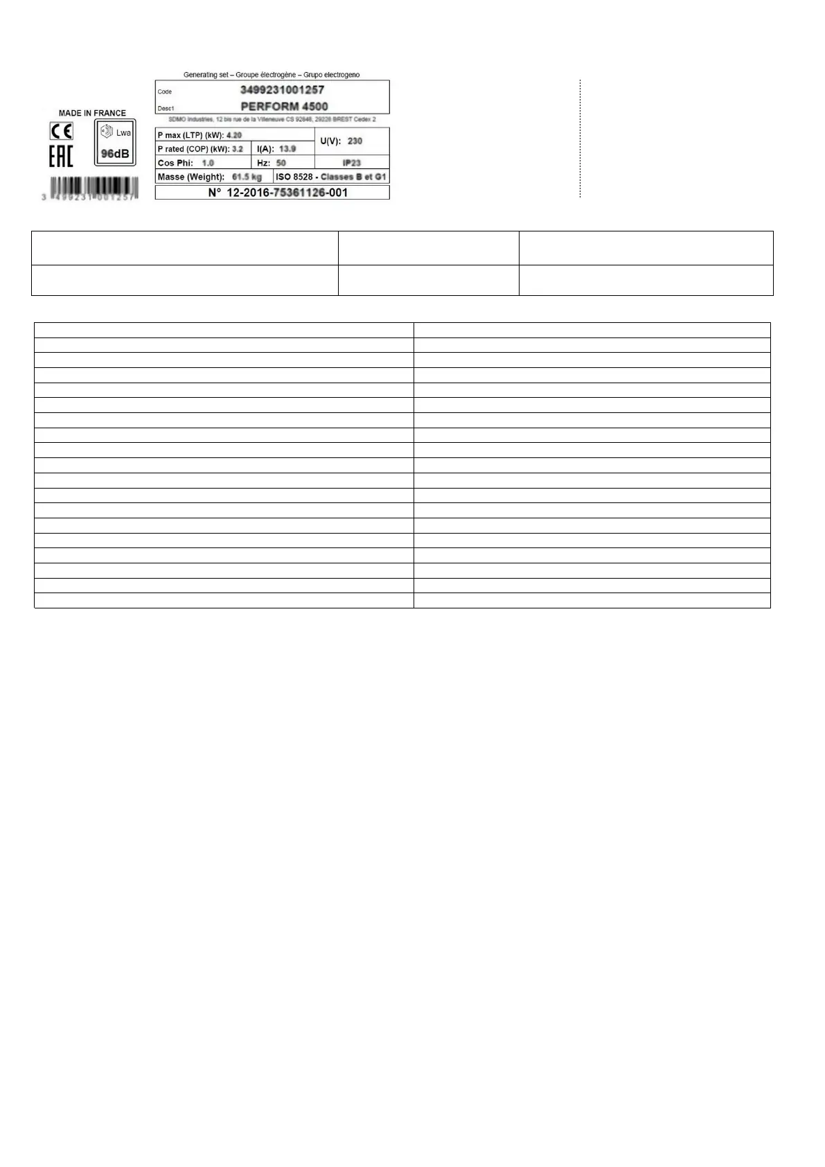 **Överspänningsskydd: Aggregatets elektriska krets skyddas av en eller flera termiska magnetströmbrytare. Vid eventuell överladdning och/eller