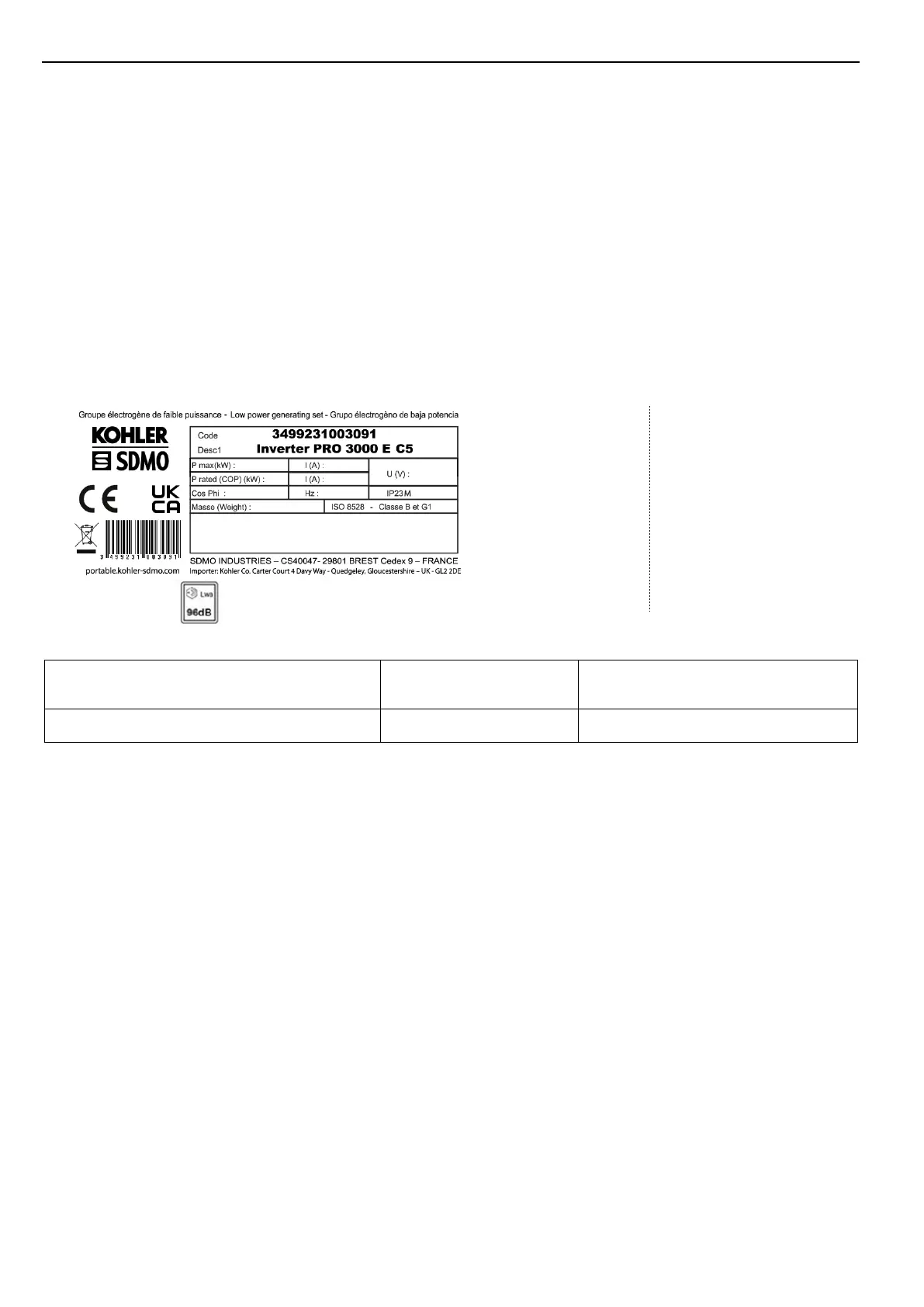 Идентификационная табличка электроагрегата (пример приведен ниже) наклеена внутри одной из двух металлических