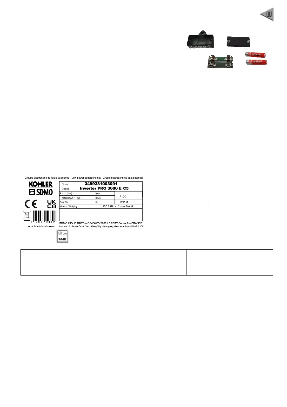 Seadmete mainitud töötulemused on saavutatud tingimustel, mis vastavad standardile ISO 8528-1(2005)-le: