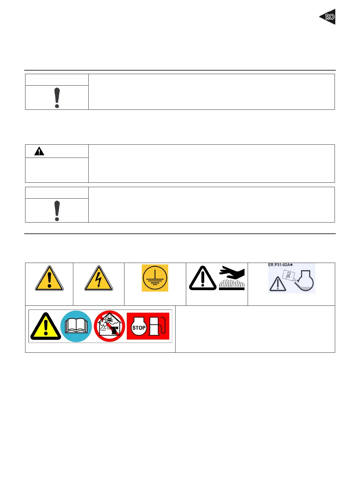 2.1 Semnificaţia pictogramelor prezente pe grupul electrogen