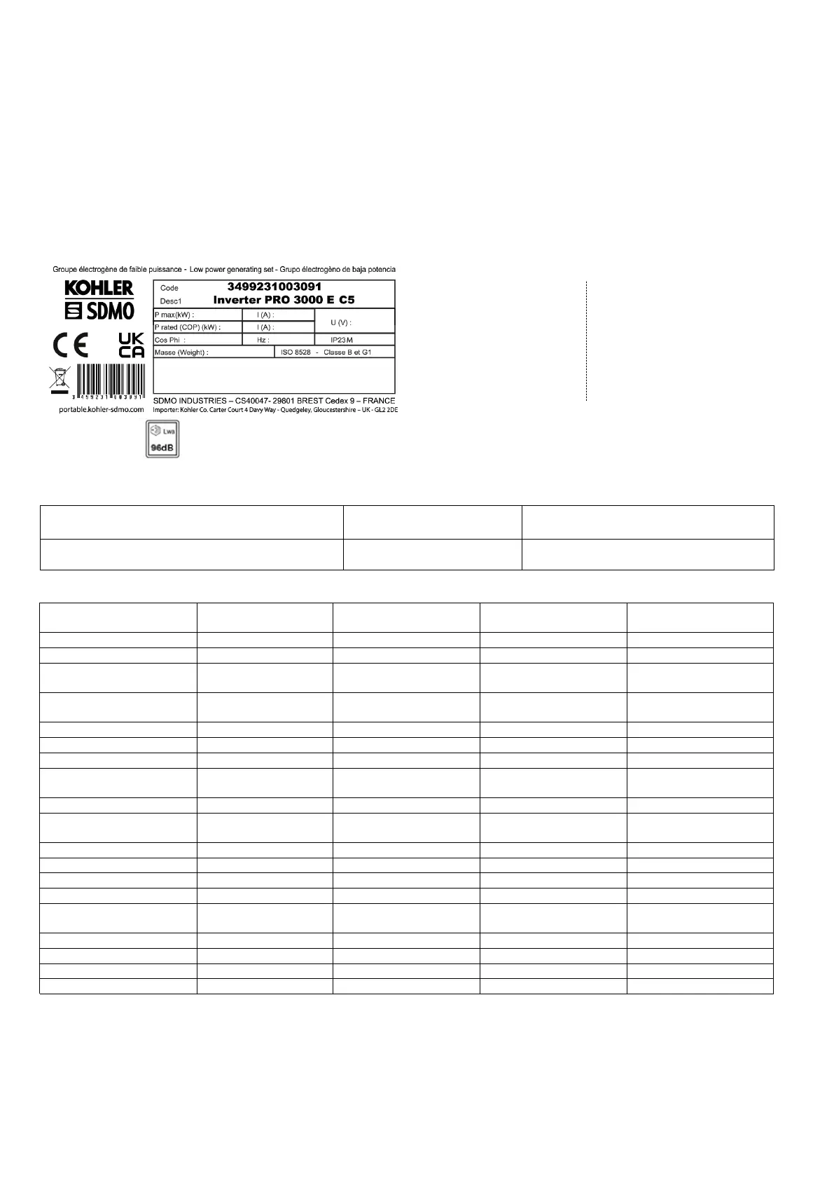 La placa de identificación del equipo (ejemplo a continuación) va pegada en el interior de una de las dos placas aislantes o en el