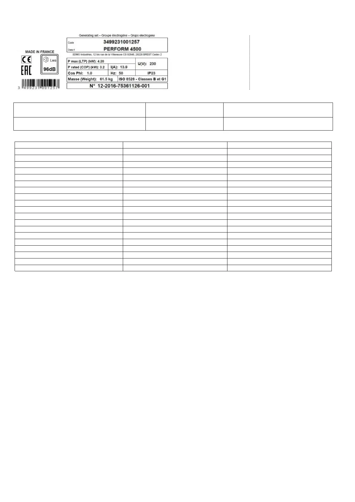 Aparato identifikavimo plokštelė (žr. toliau pateiktą pavyzdį) yra priklijuota ant vienos iš dviejų juostų arba ant rėmo.