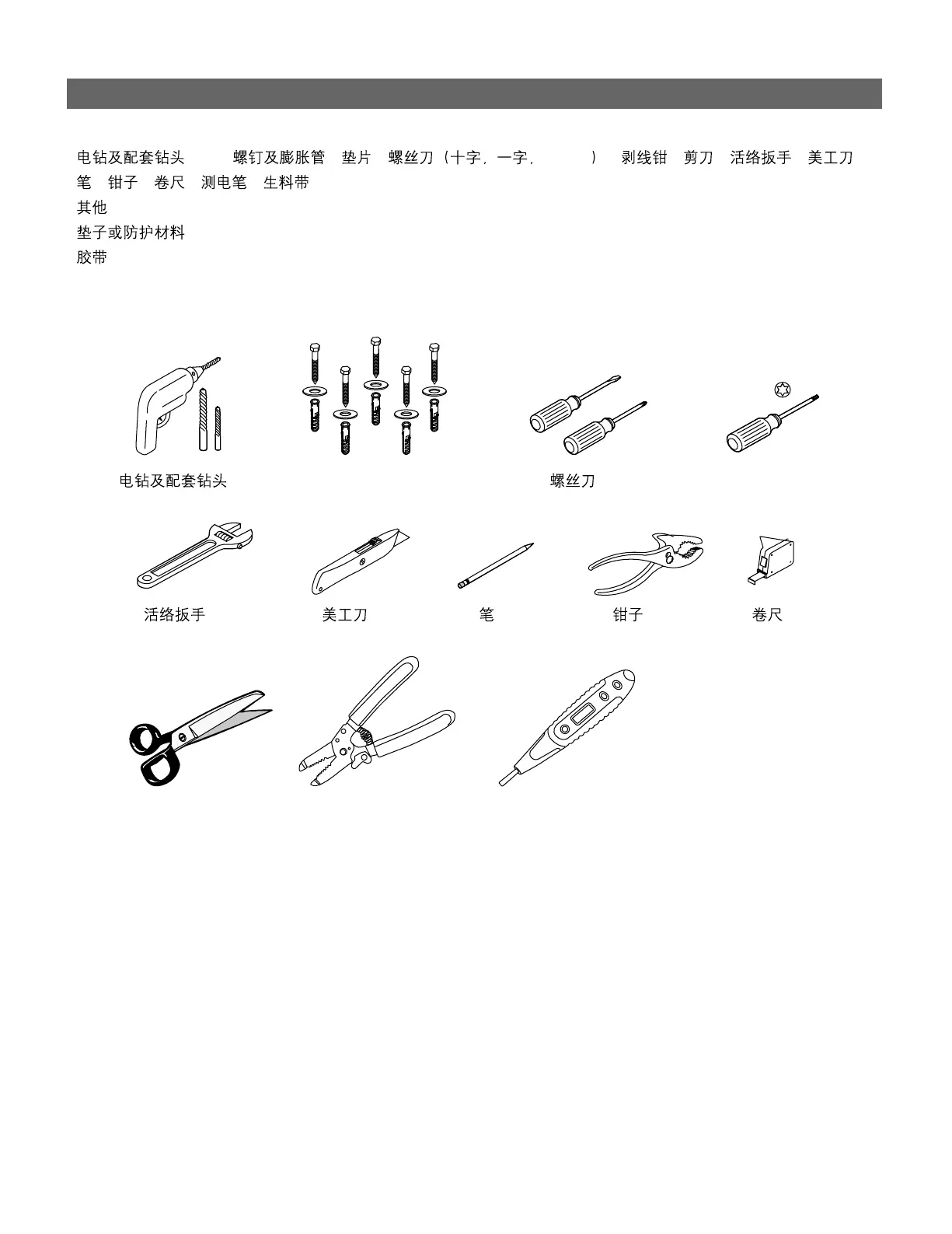 所需工具及材料(不随货供应)