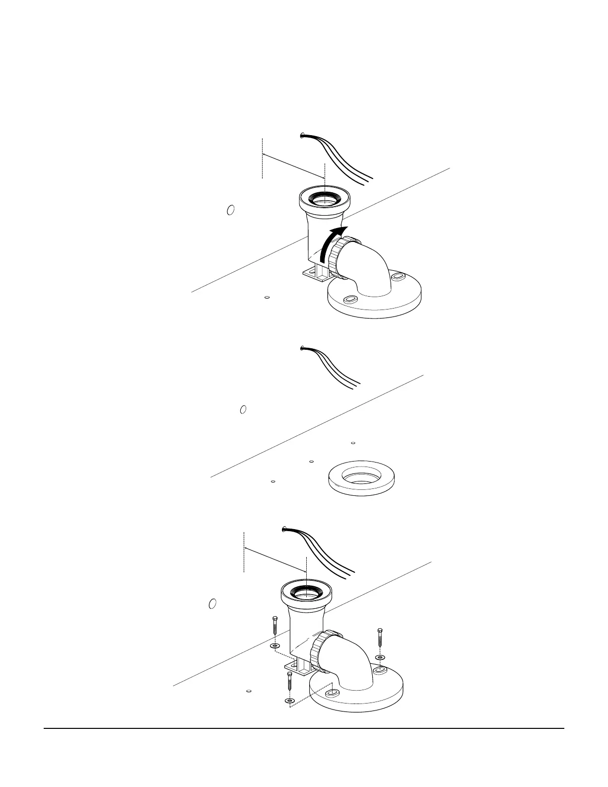 3、用3个螺钉和垫片把排污管固定在地面,并再次确保弯管排污口中心距墙最小距离大于163mm。