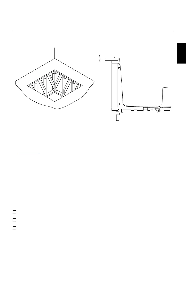 Provea una separación de 1/16" (2 mm) entre el borde de la bañera y la estructura