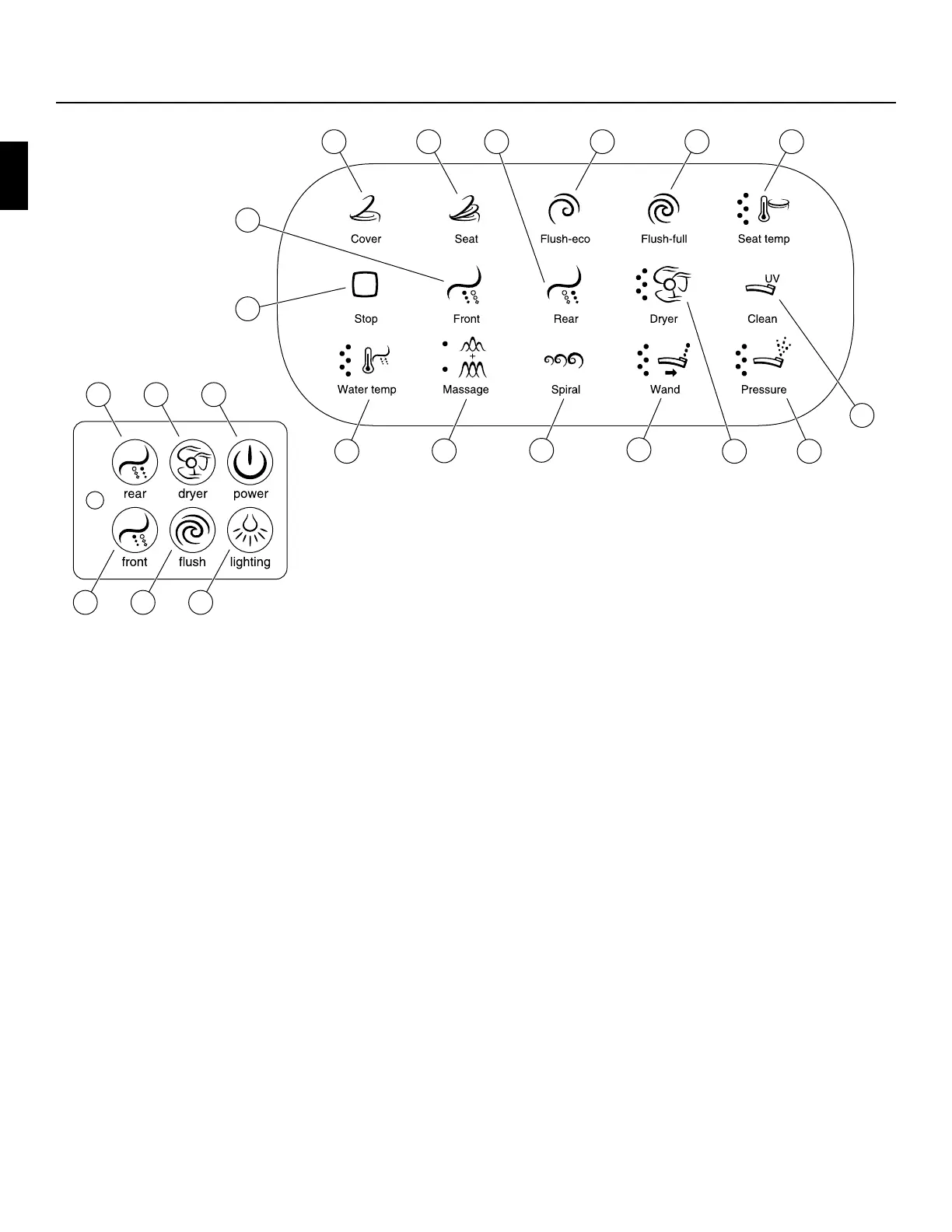 (H y R) - Lavado posterior (Rear): Oprima para activar la función de lavado posterior. La función se detiene después de