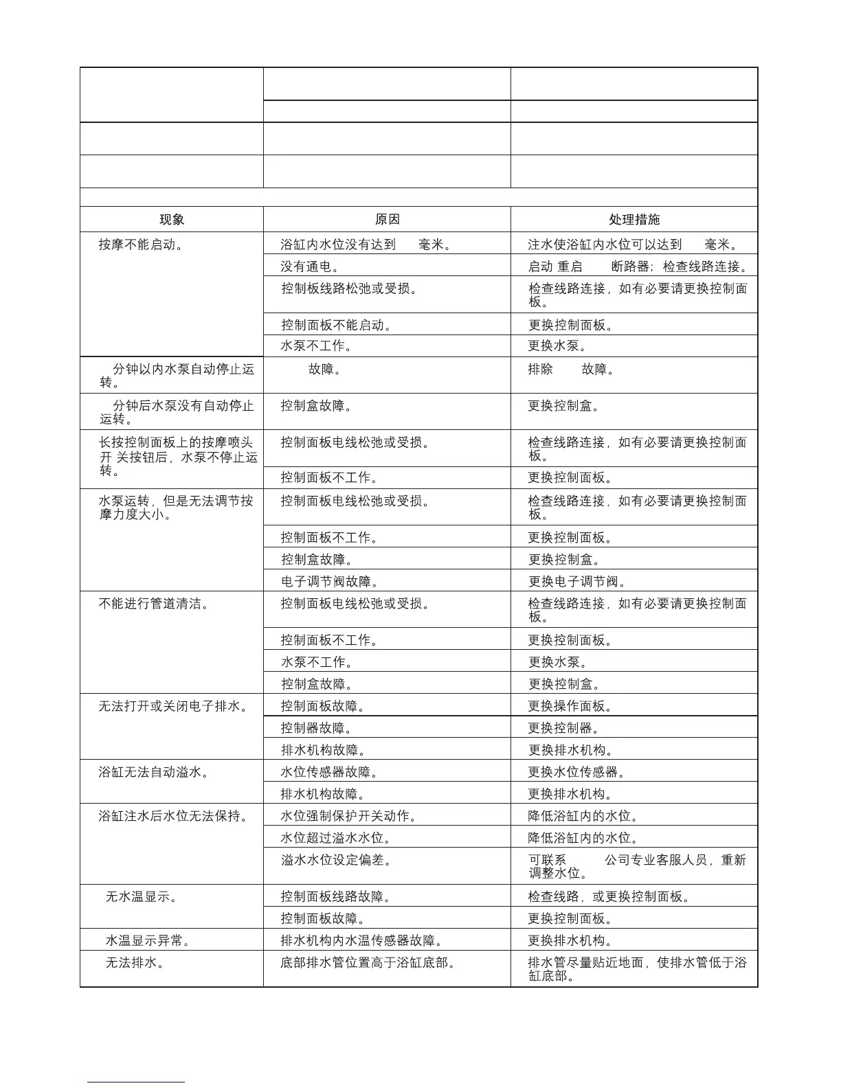12. The bath fails to drain