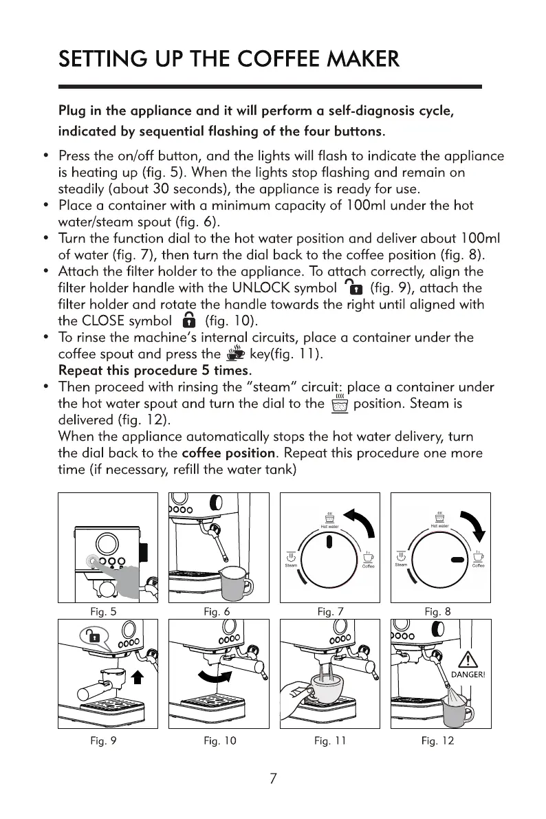 of water (fig. 7), then turn the dial back to the coffee position (fig. 8).