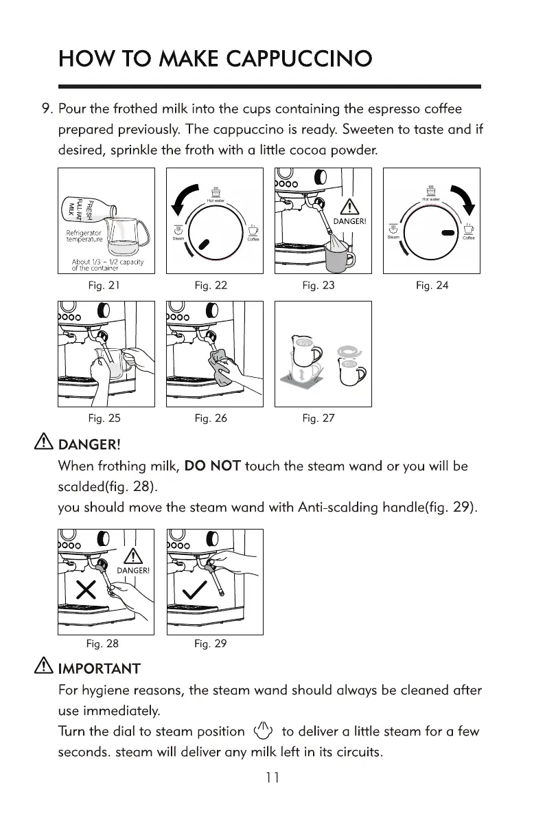 you should move the steam wand with Anti-scalding handle(fig. 29).