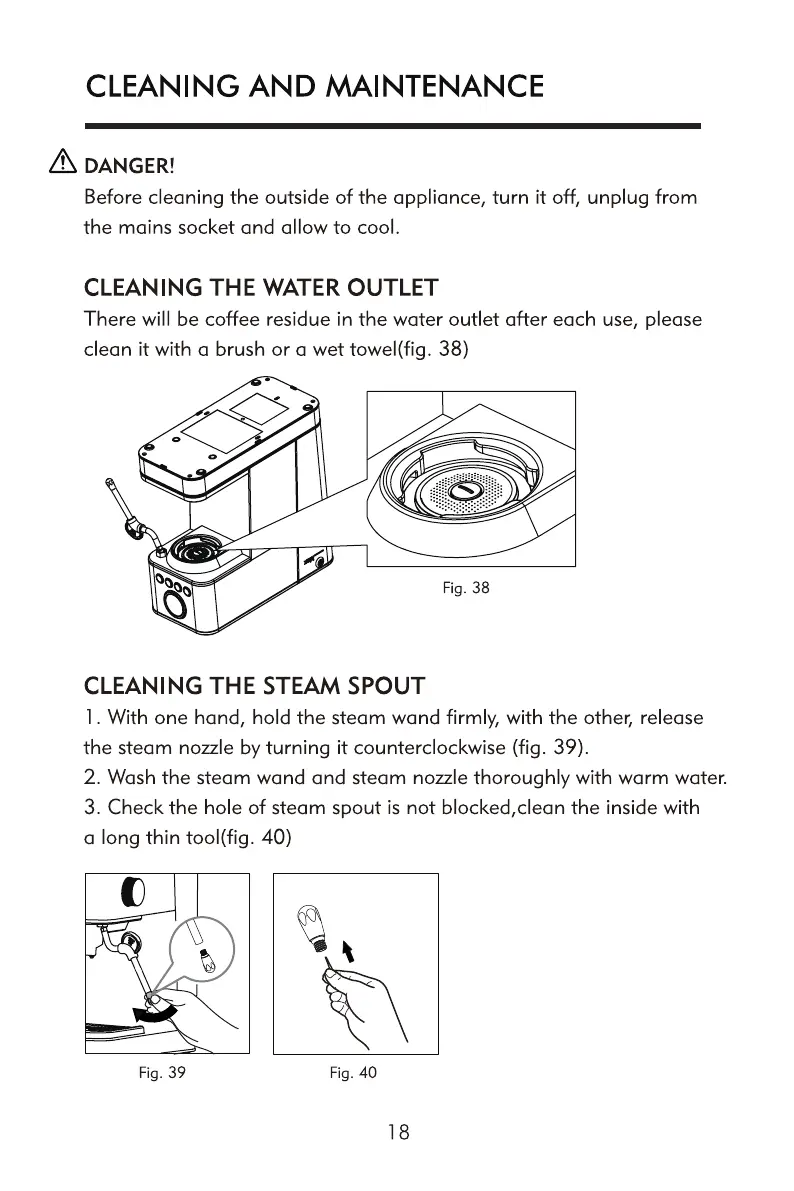 the steam nozzle by turning it counterclockwise (fig. 39).