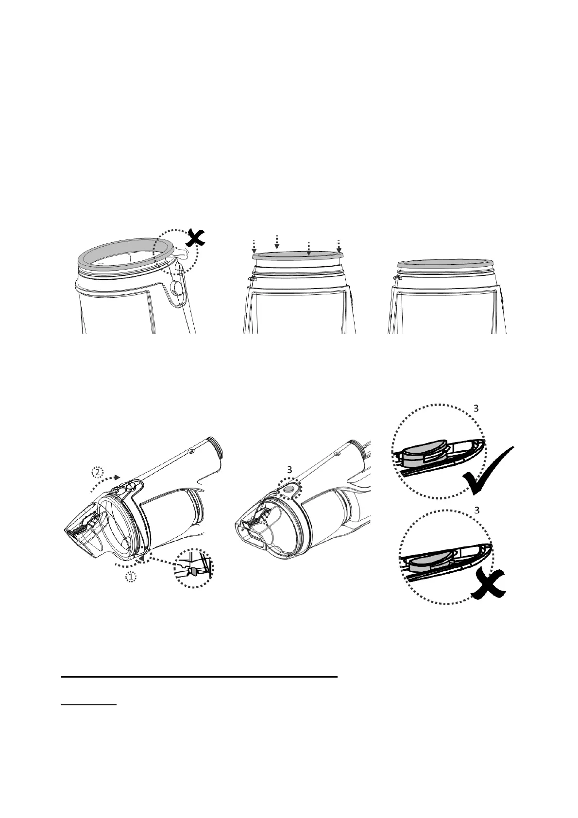 darauf, dass das Filterbeutel/Filterkäfig vollständig im Inneren des Hauptkörpers