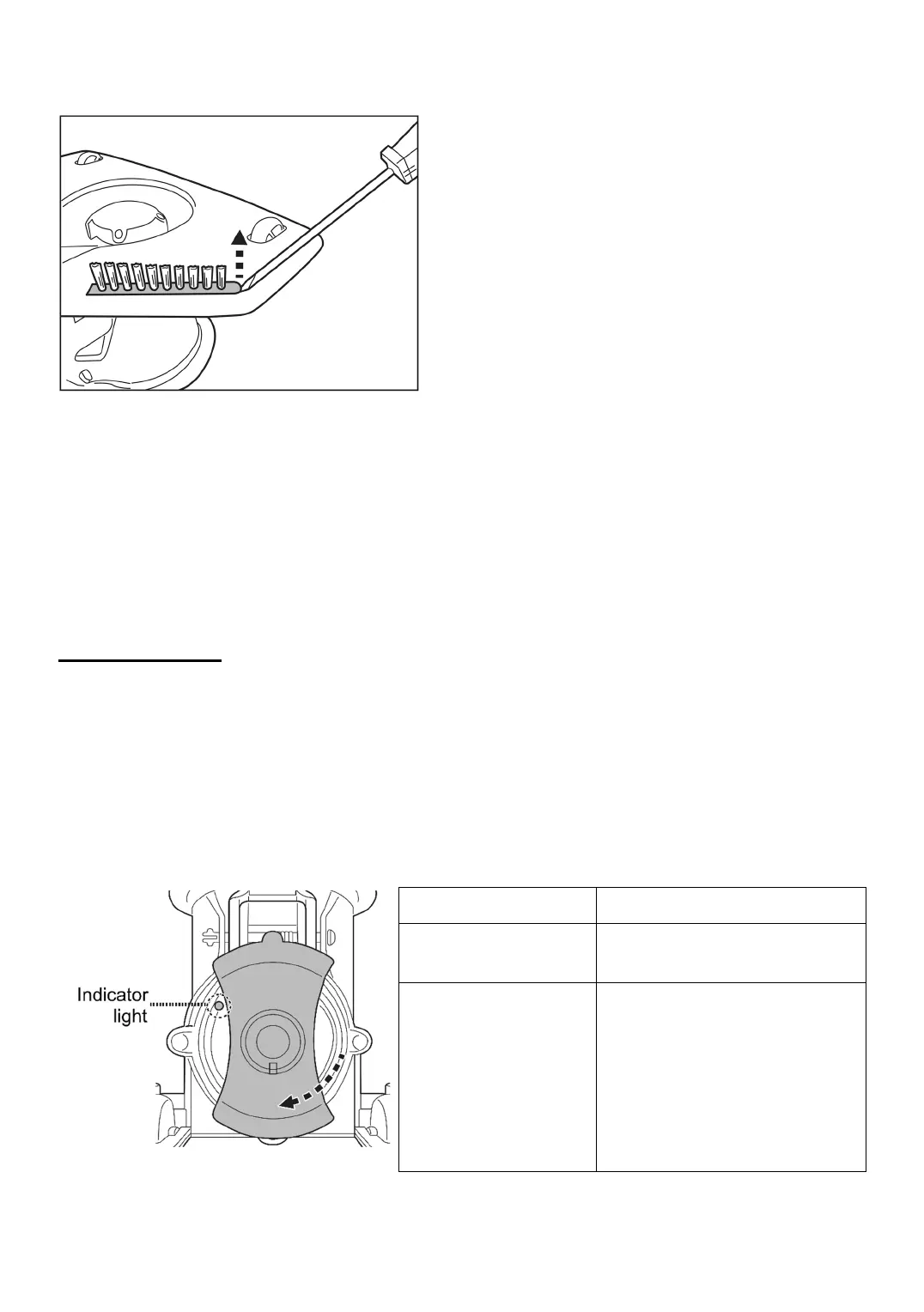 until it stops and clicks, and the power indicator at the top c